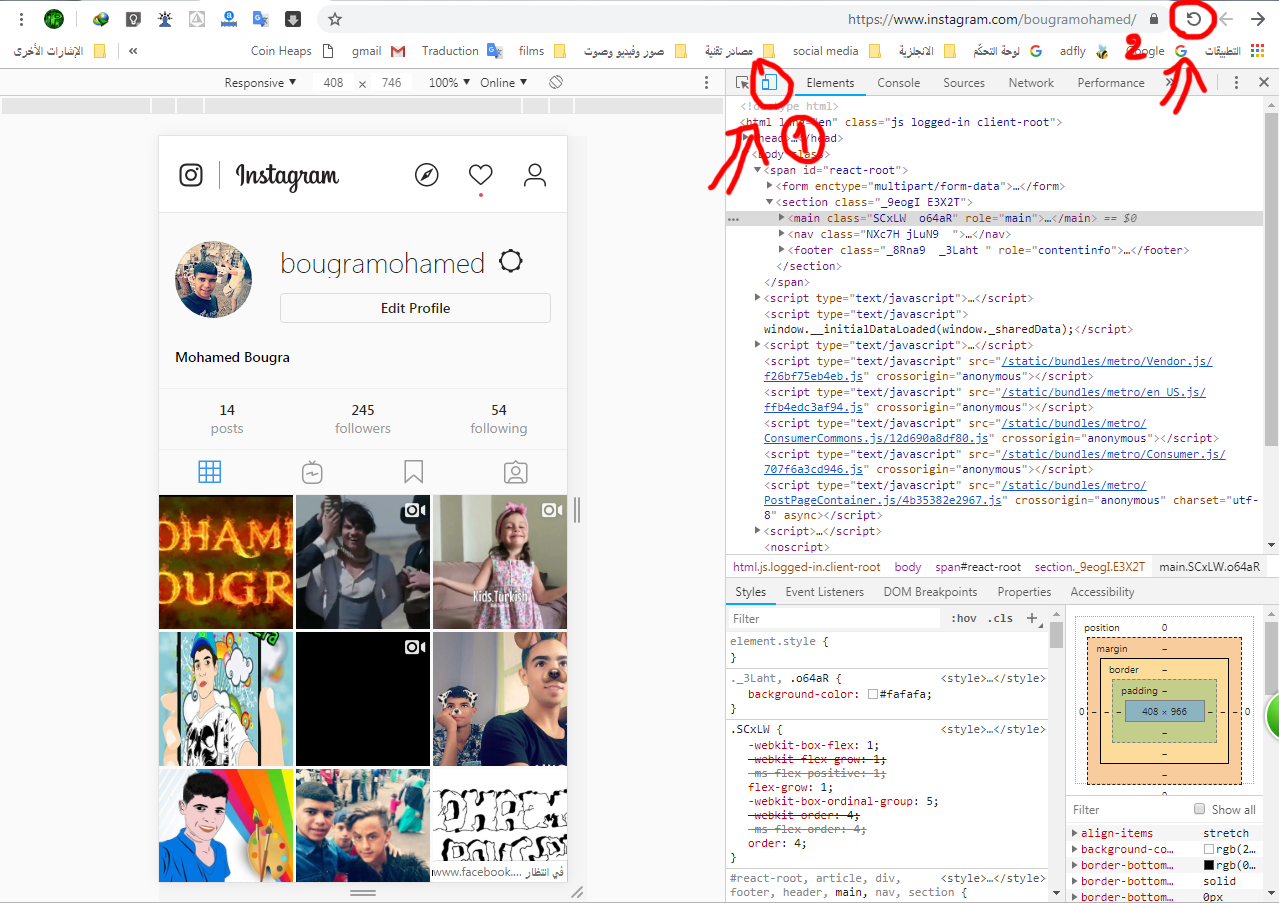 قم بالدخول الى حسابك على الانستغرم وتقوم بالضغط بزر يمين الفارة بعدها سوف تضهر لك قائمة بها بعض الخيارات تقوم بالضغط على الخيار الاخير ادا كان حاسوبك باللغة العربية سوف تجد مكتوب عليه فحص بعد الضغط عليها سوف تضهر لك متل هده الواجهة التي في الصورة
